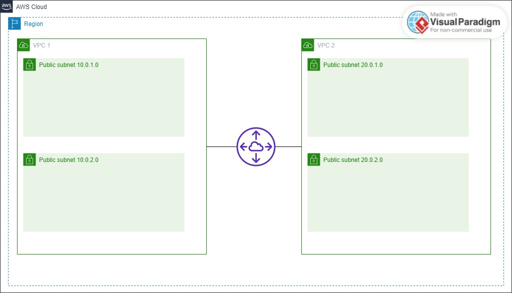 VPC 1環境1 2 3 4 5 6 7 8 9 10 11 12 13 14 15 16 17 18 19 20 21 22 23 24 25 26 27 28 29 30 31 32 33 34 35 36 37 38 39 40 41 42 43 44 45 46 47 48 49 50 51 52 53 54 55 56 57 58 59 60 61 62 63 64 65 66 67 68 69 70 71 72 73 74 75 76 77 78 79 80 81 82 83 84 85 86 87 88 89 90 91 92 93 94 95 96 97 98 99 100 101 102 103 104 105 106 107 108 109 110 111 112 113 114 115 116 117 118 119 120 121 122 123 124resource "aws_vpc" "vpc-1" { cidr_block = "10.0.0.0/16" tags = { "Name" = "vpc-1" } } resource "aws_subnet" "subnet-1a" { cidr_block = "10.0.1.0/24" vpc_id = aws_vpc.vpc-1.id availability_zone = "us-west-2a" tags = { "Name" = "subnet-1a" } } resource "aws_subnet" "subnet-1b" { cidr_block = "10.0.2.0/24" vpc_id = aws_vpc.vpc-1.id availability_zone = "us-west-2a" tags = { "Name" = "subnet-1b" } } resource "aws_route_table" "route-table-1" { vpc_id = aws_vpc.vpc-1.id route { cidr_block = "20.0.0.0/16" vpc_peering_connection_id = aws_vpc_peering_connection.peer.id } route { cidr_block = "0.0.0.0/0" gateway_id = aws_internet_gateway.igw-1.id } tags = { "Name" = "route-table-1" } } resource "aws_route_table_association" "subnet-1a" { subnet_id = aws_subnet.subnet-1a.id route_table_id = aws_route_table.route-table-1.id } resource "aws_route_table_association" "subnet-1b" { subnet_id = aws_subnet.subnet-1b.id route_table_id = aws_route_table.route-table-1.id } resource "aws_internet_gateway" "igw-1" { vpc_id = aws_vpc.vpc-1.id tags = { Name = "igw-1" } } resource "aws_security_group" "sg-1" { name = "sg1" vpc_id = aws_vpc.vpc-1.id ingress { from_port = 22 to_port = 22 protocol = "tcp" cidr_blocks = ["0.0.0.0/0"] } ingress { from_port = 80 to_port = 80 protocol = "tcp" cidr_blocks = ["0.0.0.0/0"] } egress { from_port = 0 to_port = 0 protocol = "-1" cidr_blocks = ["0.0.0.0/0"] } tags = { Name = "sg-1" } } resource "aws_eip" "eip-1a" { vpc = true } resource "aws_eip" "eip-1b" { vpc = true } resource "aws_eip_association" "eipa-1a" { instance_id = aws_instance.ec2-1a.id allocation_id = aws_eip.eip-1a.id } resource "aws_eip_association" "eipa-1b" { instance_id = aws_instance.ec2-1b.id allocation_id = aws_eip.eip-1b.id } resource "aws_instance" "ec2-1a" { ami = "ami-0747e613a2a1ff483" instance_type = "t2.micro" key_name = "demo-key-us-west-2" availability_zone = "us-west-2a" subnet_id = aws_subnet.subnet-1a.id vpc_security_group_ids = [aws_security_group.sg-1.id] tags = { Name = "ec2-1a" } } resource "aws_instance" "ec2-1b" { ami = "ami-0747e613a2a1ff483" instance_type = "t2.micro" key_name = "demo-key-us-west-2" availability_zone = "us-west-2a" subnet_id = aws_subnet.subnet-1b.id vpc_security_group_ids = [aws_security_group.sg-1.id] tags = { Name = "ec2-1b" } } -